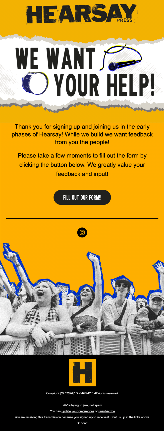 To further strengthen Hearsay's branding, I have created Headliner as the main header font. I have also taken photos of a local band for a feature in Hearsay Press, and created the social media assets to showcase the feature.